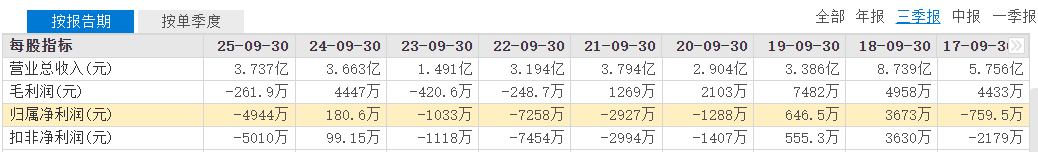 滨海能源归母净利润、扣非净利润均连续5年3季均亏损。2020年至2024年及2025年前三季度,公司归母净利润分别为-1652万元、-5696万元、-1.02亿元、-1811万元、-2813万元、-4944万元;扣非净利润分别为-1594万元、-5919万元、-1.04亿元、-3215万元、-2802万元、-5010万元。