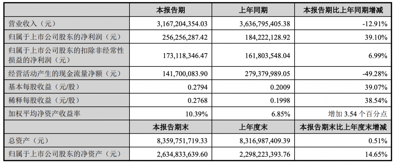 报告期内,模塑科技实现营业收入31.67亿元,同比下降12.91%;归属于上市公司股东的净利润2.56亿元,同比增长39.10%;归属于上市公司股东的扣除非经常性损益的净利润1.73亿元,同比增长6.99%;基本每股收益0.28元/股,同比增长39.07%。