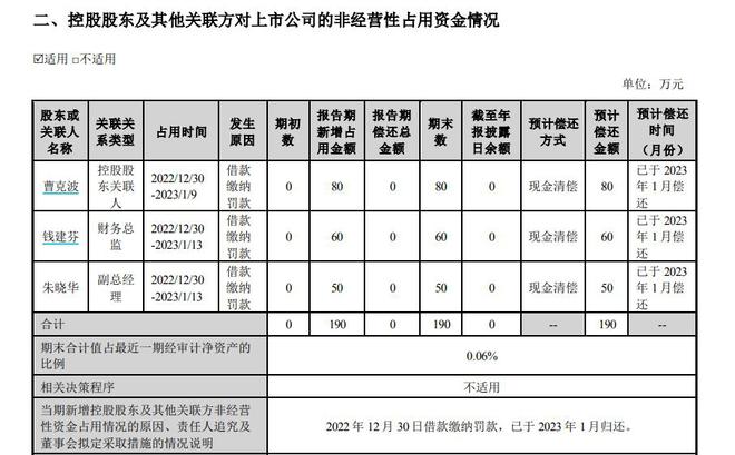 模塑科技2022年年度报告显示,曹克波、钱建芬、朱晓华均于2022年12月30日借款缴纳罚款,借款金额分别为80万元、60万元和50万元。