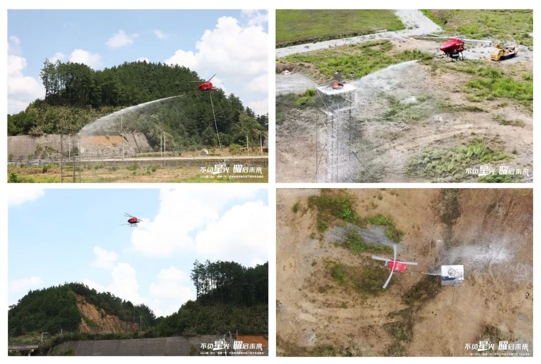 实战演练现场,厦门信达“星曜一号”通过飞控指挥舱与无人直升机的完美配合,呈现了一系列的装备组合动作,包括:飞行运输起降平台一键展开、无人机高空悬停、CAFS系统实战灭火、系留水带喷射、无人机起降平台的起飞及降落、自主起飞及返航、空中应急通信组网、空中照明及喊话、紧急吊运救援等,充分展现了厦门信达“星曜一号”独有的应急救援优势。
