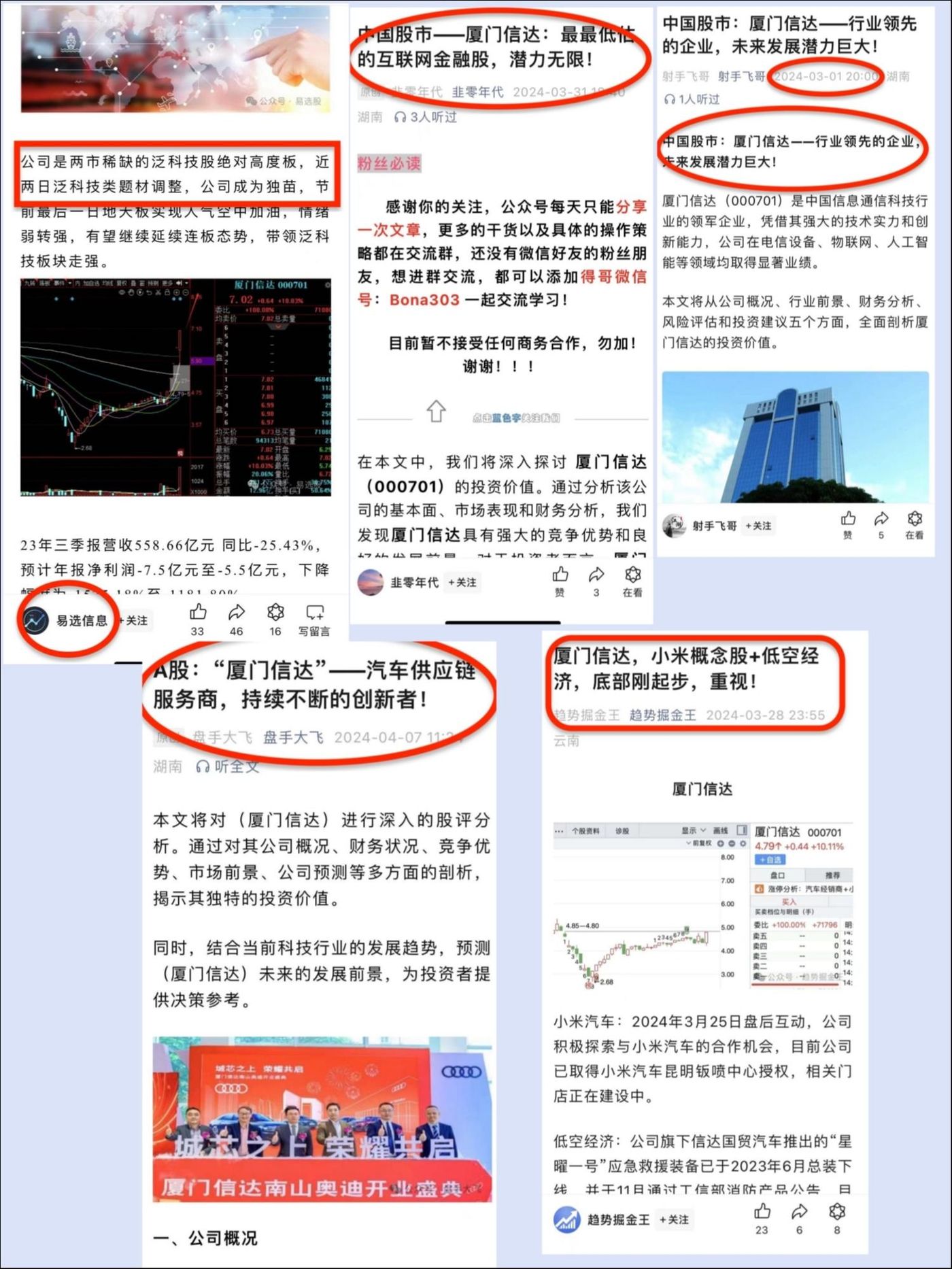 这种概念附身的情况在近期步入了小高潮,眼下大热的小米汽车、低空飞行、小金属概念都被厦门信达踩中,引来了各路炒作吹捧者,厦门信达被誉为“两市稀缺的泛科技股”,“厦门信达-行业领先的企业,未来发展潜力巨大”“最最低估的互联网金融股,潜力无限”。