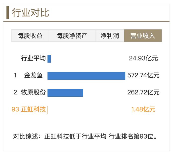 从营业收入方面来看,正虹科技低于行业平均行业排名第93位。