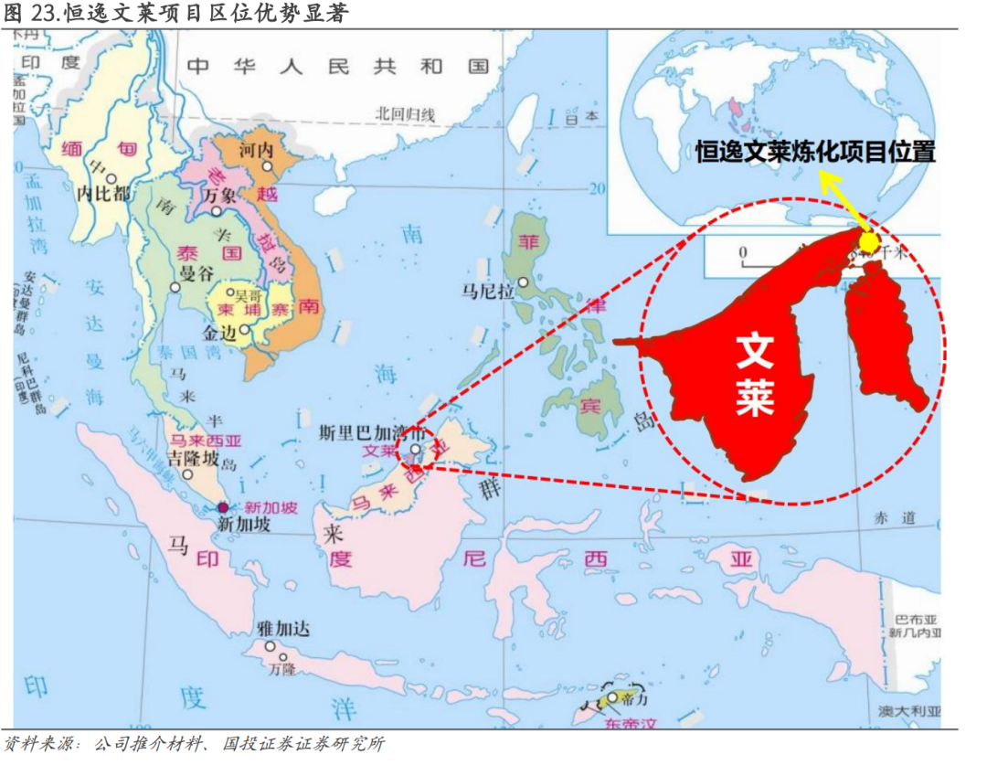 公司文莱炼厂具备多重竞争优势。1)区位优势:公司原油采购便利,无需原油进口配额,靠近马六甲海峡,原油运输距离较国内缩短,有效降低物流成本,文莱也可直接供应部分原油。此外,炼厂地处东南亚,销售市场广阔,部分成品油在文莱就地销售,剩余部分在东南亚、澳洲等地销售。2)税收优势:文莱项目位于东盟自由贸易区,进出口免关税;11年免企业所得税,符合条件可延长至24年。