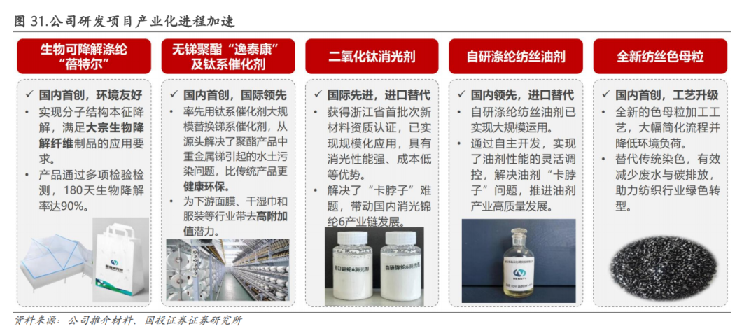 坚持绿色制造与循环经济导向,推进产业链绿色低碳升级。公司自主创新研发无锑聚酯“逸泰康”、生物可降解涤纶“蓓特尔”、生物基聚酯、低温易染纤维等环保绿色产品,以科研实力推动可持续发展。公司研发的生物可降解涤纶“蓓特尔”的创新性和市场价值受到客户青睐,阻燃聚酯销量显著增加,无锑环保聚酯产品进一步扩产,成功构建“实验室研发—中试放大—产业化生产”全链条转化体系。此外,公司积极推动“三剂一母粒”(催化剂、油剂、助剂、纺丝母粒)等产业配套产品的研发与产业化落地。