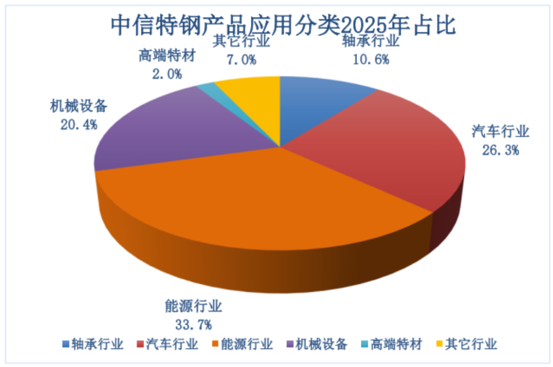 能源、汽车、机械设备、轴承行业是中信特钢2025年主要收入来源,与建筑行业的弱相关性也是其近年来营收相对坚挺的主要原因。
