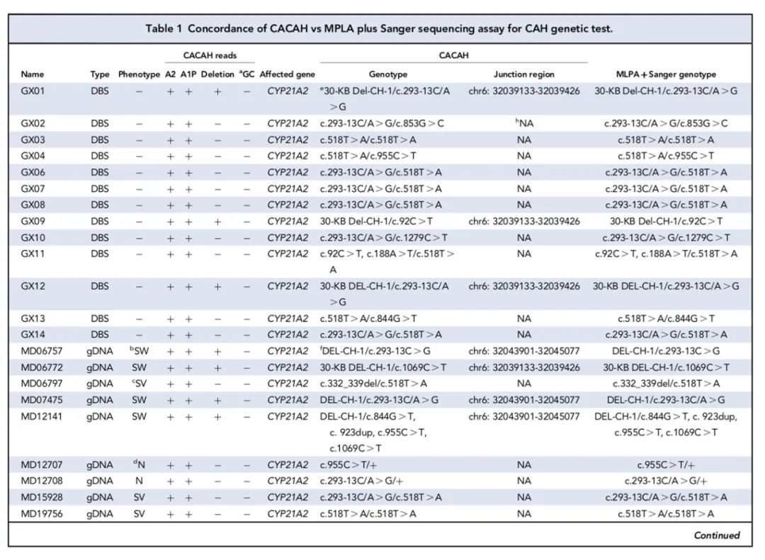 图:三代CAH与MLPA+Sanger测序进行比较