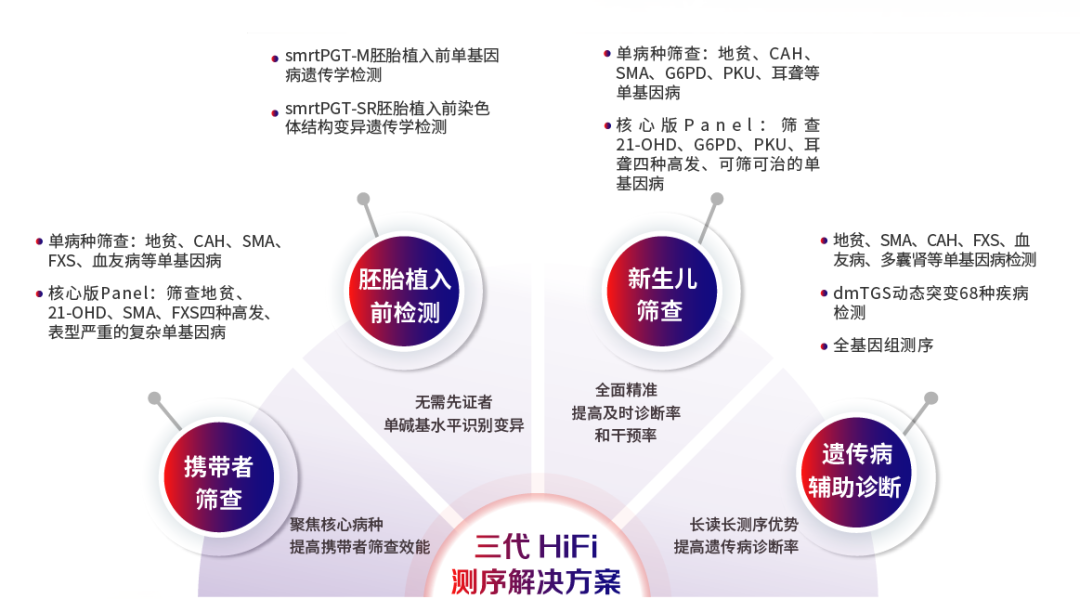 基于Sequel II CNDx测序平台,无需打断DNA,可直接读取全长基因序列,高准确度地检测单个DNA分子的基因变异信息及其排列方式,能够实现1ul全血样本的α-地中海贫血和β-地中海贫血同时检测。
