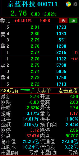 12月28日,京蓝科技低开低走,截至发稿,该股跌近3%,报2.76元,市值28.25亿元。