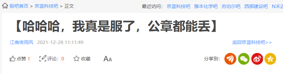 消息发布后引发了网友吐槽,有股民在京蓝科技股吧表示:“真的服了,连公章都能弄丢。”