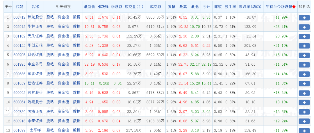 6月5日锦龙股份股价下降4.1%,6日一度盘中跌停,最终跌幅9.97%。截至6月18日收盘价8.51元,较6月4日的9.52元累跌超10%。据东方财富choice数据,在50只证券概念股中,锦龙股份年内跌幅以41.99%位列第一,远超第二名华林证券的28.41%。