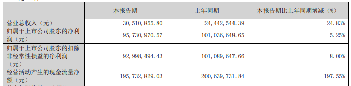 2025年第一季度,锦龙股份实现营业总收入0.31亿元,同比增长24.83%;归属于上市公司股东的净利润-0.96亿元,上年同期为-1.01亿元;归属于上市公司股东的扣除非经常性损益的净利润-0.93亿元,上年同期为-1.01亿元;经营活动产生的现金流量净额-1.96亿元、上年同期为2.01亿元。