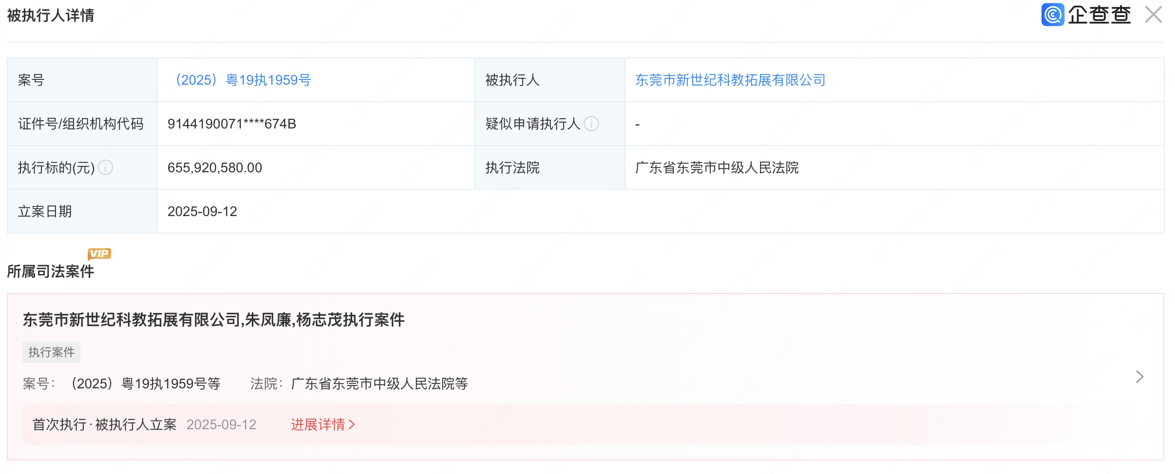 除了上述涉及到司法拍卖的纠纷外,新世纪公司还存在一单执行案件。9月12日,新世纪公司被广东省东莞市中级人民法院立案执行,执行标的约为6.56亿元。