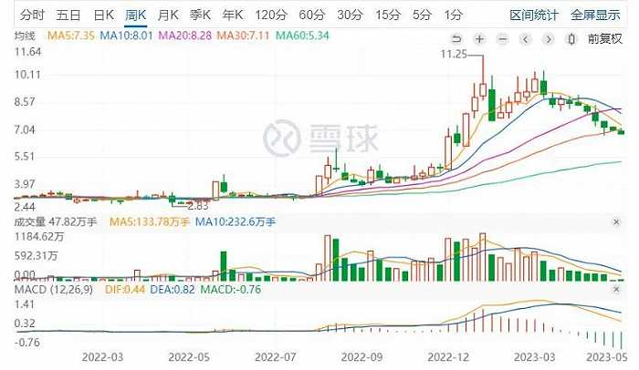 5月12日,黑芝麻收盘价为6.83元/股,较今年3月底下跌约2元/股。