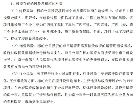 而在风险分析部分,黑芝麻从建设风险、运营风险和行业风险三方面对该项目进行了分析,并均得到了“风险较小”的结论。