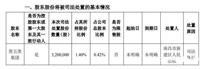 8月27日公告提及,目前各相关方正在履行该股份转让的尽职调查等相关程序,在前述转让股份过户登记前,黑五类集团仍为公司控股股东,若该320万股股份最终被司法处置,各原股东放弃表决权的股份占公司总股本的比例将由17.66%变更为17.24%。
