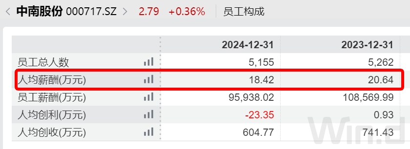 因为亏损,中南股份人均薪酬去年下降2万多元,还剩18.42元,如果今年最终盈利,或会对职工薪酬提升有点作用。