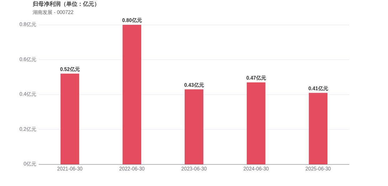 在2025年上半年,湖南发展的经营业绩出现双降,营业收入和归母净利润均同比下滑。