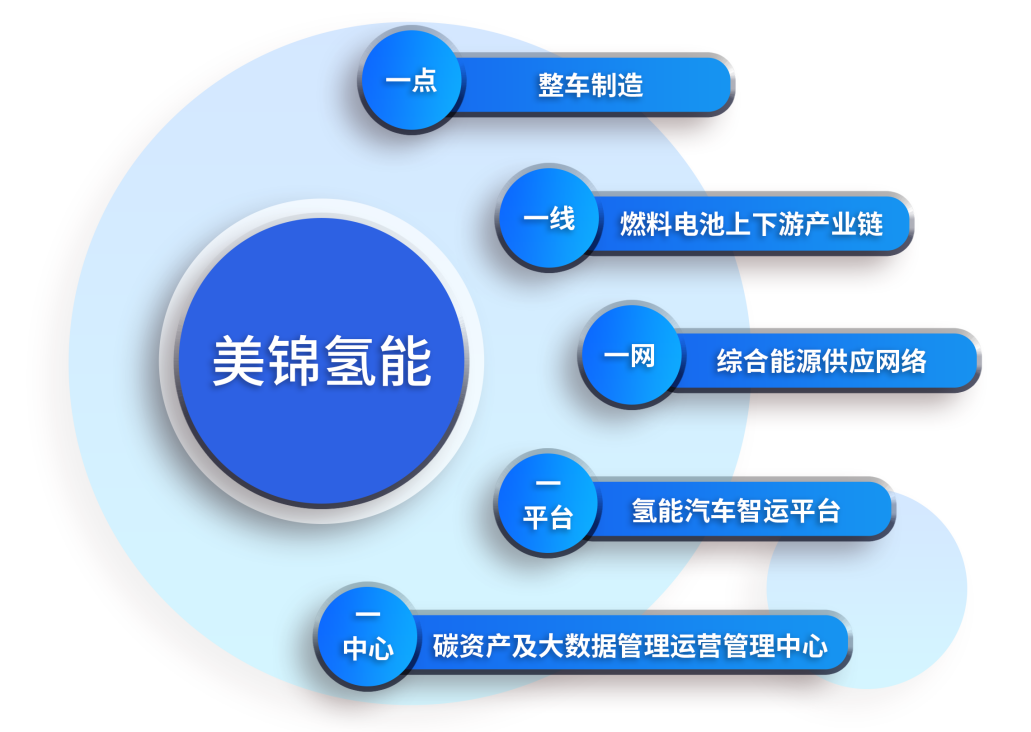 “一平台”指氢能汽车智运平台。美锦能源旗下小柿子(北京)汽车供应链管理有限公司,借力股东在氢能领域全产业链领域布局的优势,将小柿子氢能智运平台作为氢能全产业链下游车辆运营的重点平台,该平台作为北京首台4.5T、12T、18T氢能物流车,49T氢能重卡的商业化运营平台,平台自持车辆成为北京首个商业加氢站的第一批市场化推广的加氢车辆。
