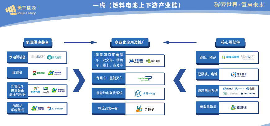 “一线”,指燃料电池上下游产业链。在这条产业链上,美锦能源控股或参股的每家企业均属于各个环节的拔尖者。