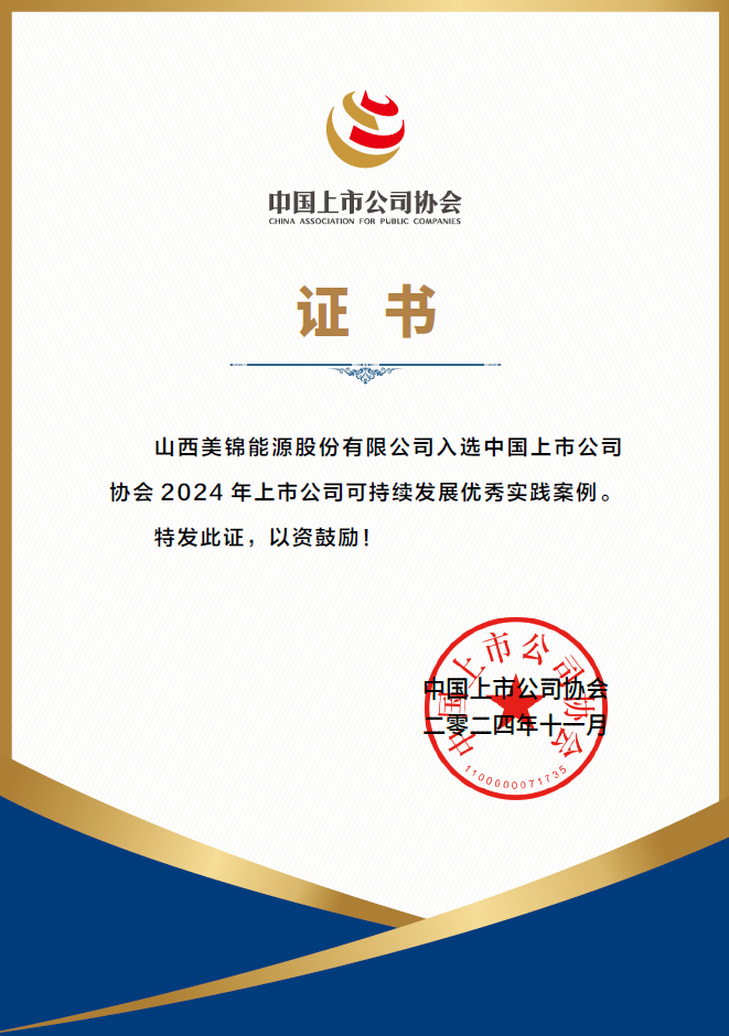 美锦能源近年来深入实践可持续发展理念,ESG工作成效有目共睹,赢得了社会乃至国际各界的广泛赞誉。经过国内外权威机构依据严格标准的专业评估,美锦能源在ESG领域的表现被高度评价并列入优秀成果案例。近期美锦能源报送的“构建氢能产业闭环,树立能源转型标杆”经筛选审核,入选中上协2024年上市公司可持续发展优秀实践案例。此外,多所知名高校也将美锦能源的ESG实践作为研究案例,深入探讨其在推动企业和社会可持续发展方面的创新路径和成功经验,进一步提升了美锦能源在行业内的影响力和示范作用。