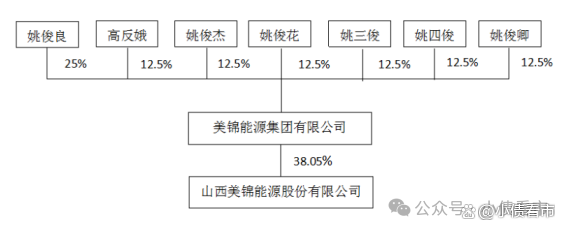 从股权结构看,美锦能源集团有限公司为美锦能源的控股股东,持股比例38.05%,姚俊良、高反娥、姚俊杰、姚俊花、姚三俊、姚四俊、姚俊卿为公司实际控制人。