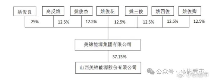 从股权结构看,美锦能源集团有限公司为美锦能源的控股股东,持股比例37.15%,姚俊良、高反娥、姚俊杰、姚俊花、姚三俊、姚四俊、姚俊卿为公司实际控制人。