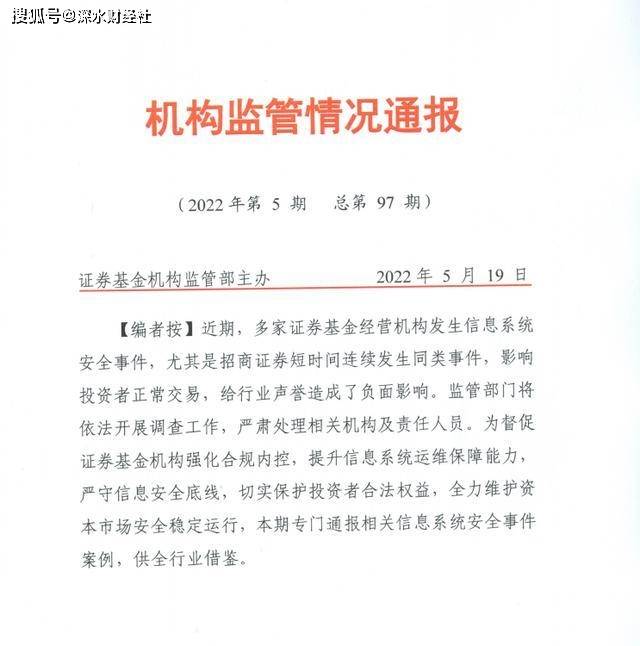 今年5月份,在证监会下发的《机构监管情况通报》(以下简称“监管通报”)中,监管机构将近期发生的多起信息系统安全事件案例作为重点进行了专门通报,其中重点提到了包括招商证券、首创证券等在内的多家券商及基金公司。