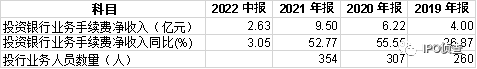 国元证券2019-2022年中报投资银行业务手续费净收入情况