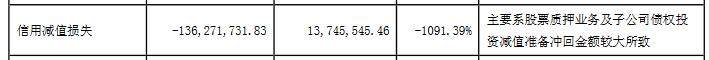 今年前三季度,国元证券信用减值损失为-1.36亿元,上年同期为1374.55万元,同比减少1091.39%。