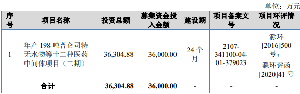 峆一药业拟募集资金3.60亿元,用于年产198吨普仑司特无水物等十二种医药中间体项目(二期)。