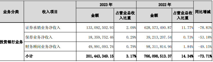 具体而言,投资银行业务方面,国元证券2023年年报表示,报告期内,公司证券承销业务净收入为1.33亿元、保荐业务净收入1835.98万元、财务顾问业务净收入为4999.11万元。