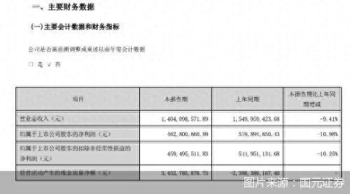 4月28日,国元证券发布2024年一季度报告。数据显示,截至一季度末,国元证券实现营业收入14.04亿元,同比下滑9.41%;归母净利润4.63亿元,同比下滑10.98%。