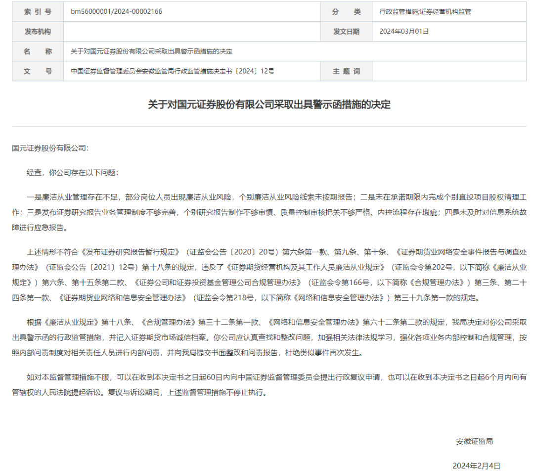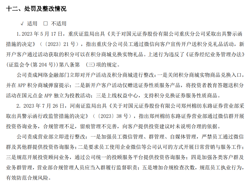 关于监管处罚信息,评级报告中一笔带过的事项,出现在国元证券2023年报中。