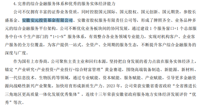 2023年报,国元证券列举了旗下多家子公司,但未具体表述安元投资的经营情况。