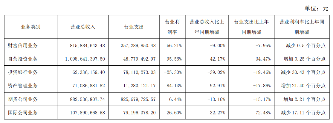 期货业务期内收入8.83亿元,同比减少13%,营收占比也较去年同期减少4个百分点至28.7%。