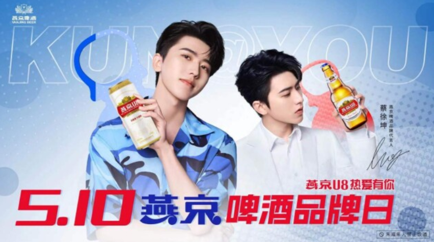 值得关注的是,在蔡徐坤代言的诸多食品品牌中,燕京啤酒于今年5.10的“中国品牌日”将蔡徐坤由燕京U8代言人升级为燕京啤酒全线品牌代言人。除现代言人蔡徐坤被北京广告协会代言规范委发文做好风险把控外,燕京啤酒近两年来代言人,如张继科、张哲瀚,频频“翻车”。