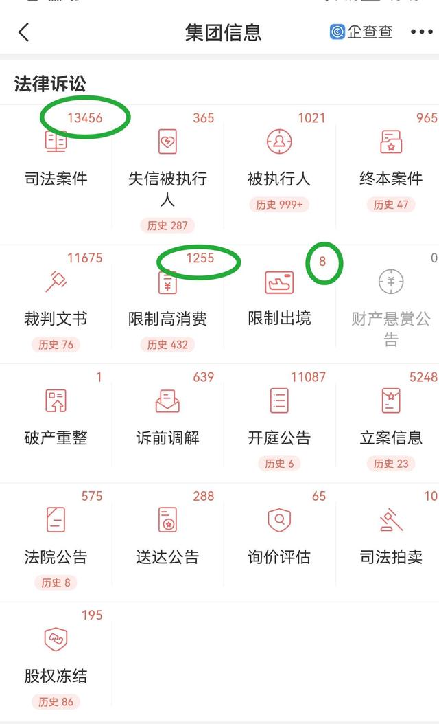 下图为显示的泰禾集团案件数量,达13456件,数据截止至2022年1月10日。