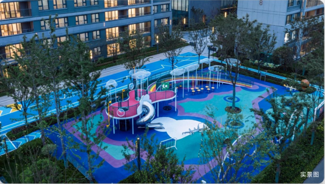 苏州中交·春映东吴项目,打造六重归家礼制,营造自然景观归家动线——酒店式归家大门、梦幻星空门楼、管家式星级大堂、下沉式景观庭院、无界镜面水景、美学禅意入户大堂;同时,营造全龄趣享的架空层,通过设施与场地、适童设计与亲子场景植入,打造“云朵乐园”儿童成长空间。