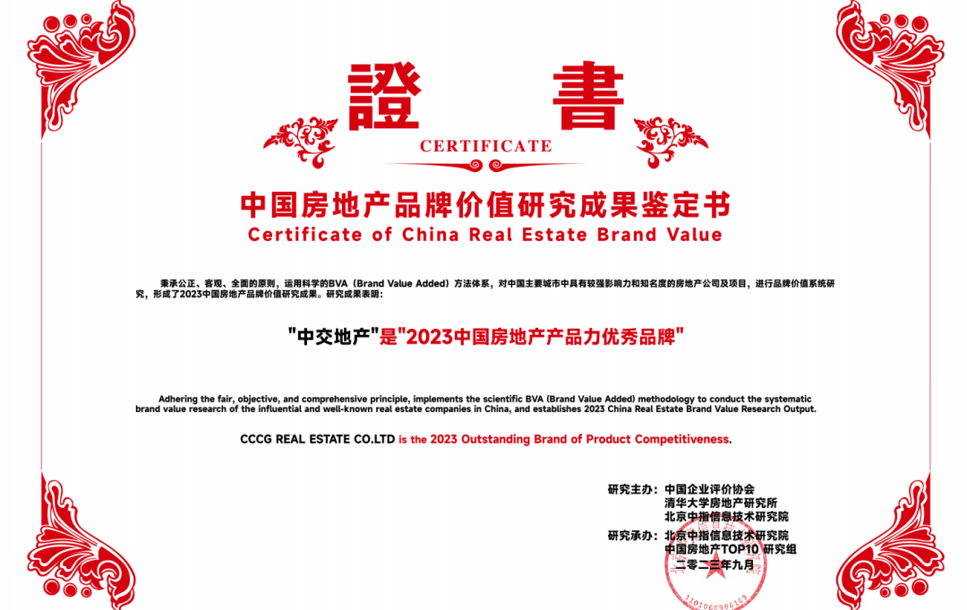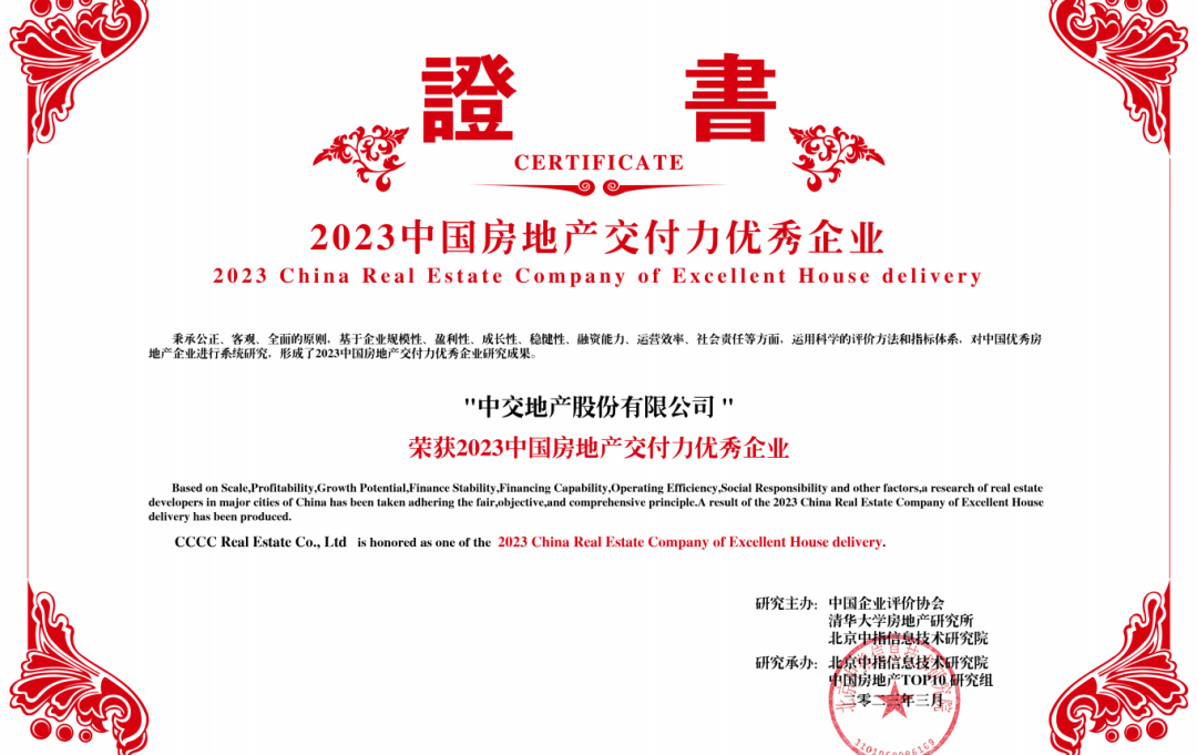 近年,伴随房地产行业进入新的发展阶段,人民对居住的需求,从“有没有”向“好不好”转变。作为央企上市公司,中交地产在行业周期调整和疫情反复双重压力下,坚决践行央企责任,将“以人民为中心的思想”转为“为客户构建美好活动,成就美好生活”的生动实践,用过硬的交付力、产品力、服务力,保持良好稳健的发展基本面,取得销售排名上行、行业地位跃升、综合实力提升的较好成绩,荣获中指研究院“2023中国房地产百强企业综合实力TOP20”“2023中国房地产百强企业成长性TOP10”“2023中国房地产公司品牌价值TOP10(央企)”“2023中国房地产交付力优秀企业”“2023年中国房地产产品力优秀品牌”等荣誉,以实际行动坚决站稳人民立场,在高质量发展新征程上展现国有企业社会责任和时代担当。