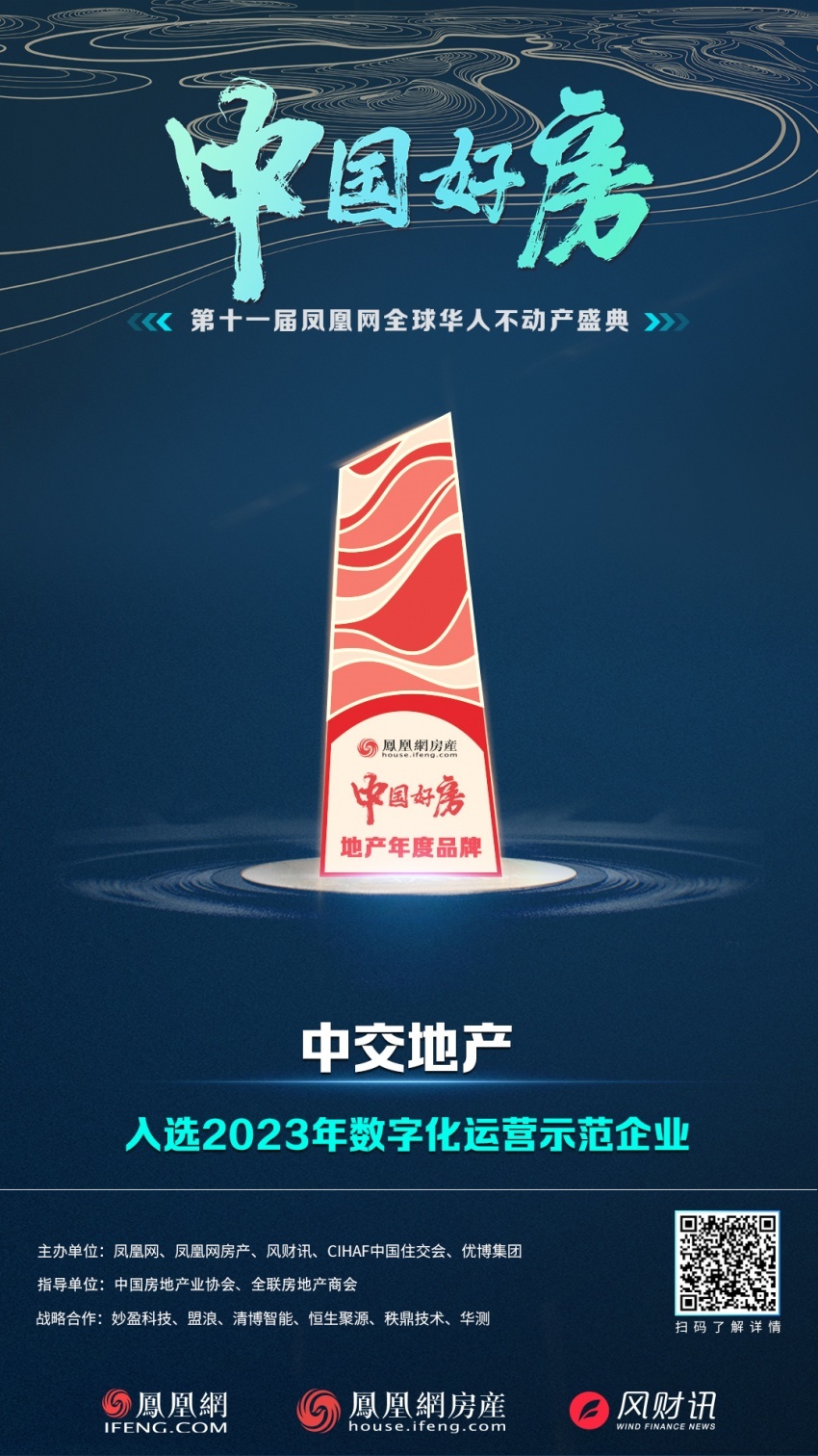 在评选活动中,中交地产荣获2023中国好房·年度品牌“数字化运营示范企业”奖。