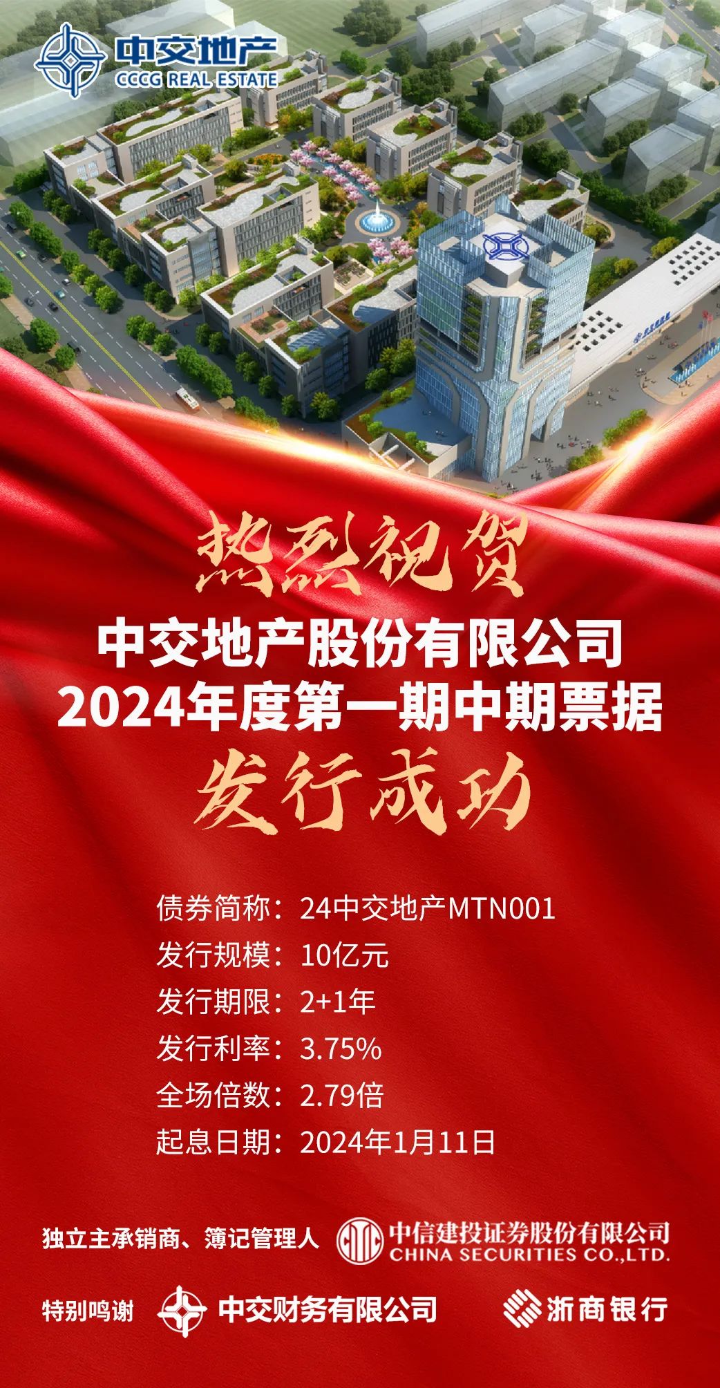 喜报 | 热烈祝贺中交地产2024年度第一期中期票据发行成功