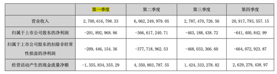 如果把归母净利润分解到每个季度,可以发现,中交地产在2020年第一季度就已经出现过一次亏损;2021年和2022年是第一季度和第三季度出现亏损;到了2023年,每个季度都在亏损。