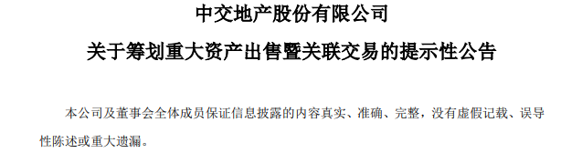 1月21日晚间,中交地产发布公告称,拟将持有的房地产开发业务相关资产及负债转让至公司控股股东中交房地产集团,本次交易涉及的具体资产范围尚需交易双方进一步协商确定。
