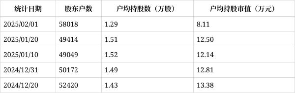 从2月11日公开信息显示,中交地产截至2025年2月1日公司股东户数为5.80万户,较上期(2025年1月20日)增加8604户,增幅为17.41%,持股趋于分散。