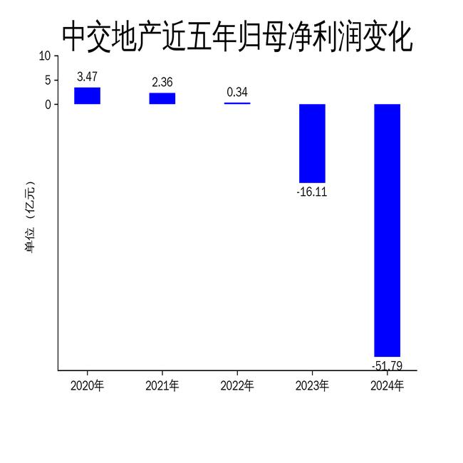 2025年4月15日,中交地产发布2024年年报,数据显示公司全年实现营业收入183.02亿元,同比下降44.59%;归属净利润为-51.79亿元,同比大幅下降221.44%。扣除非经常性损益后的净利润为-53.22亿元,同比下降209.51%。公司总资产为1,076.98亿元,较上年末减少12.63%,归属于上市公司股东的净资产为-35.79亿元,触发退市风险警示,股票简称变更为“ST中地”。