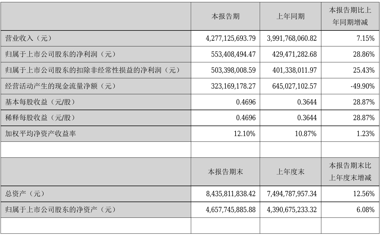8月18日,普洛药业(000739)近日发布2021年半年度报告,报告期内营业收入4,277,125,693.79元,同比增加7.15%;净利553,408,494.47元,同比净利增加28.86%。