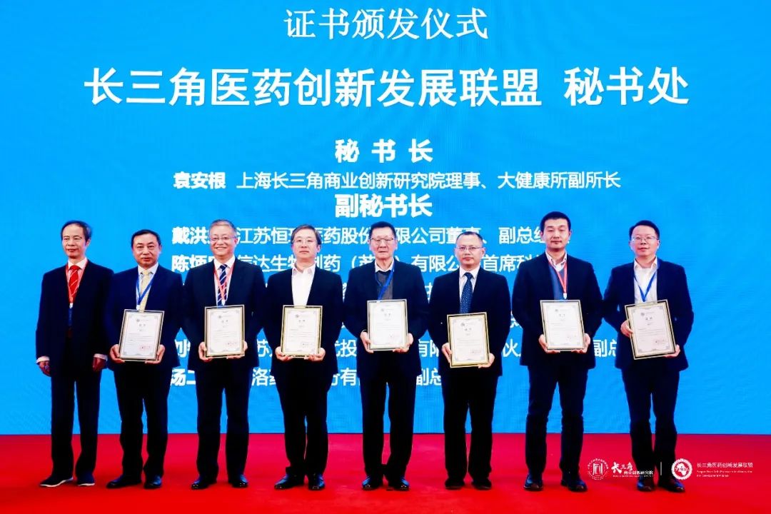 成立大会上,联盟领导和专家在与会嘉宾们的见证下,共同揭牌宣告长三角医药创新发展联盟成立,并为联盟的理事长、名誉理事长、副理事长、秘书处及理事成员单位颁发证书,为专委会专家颁发聘书。