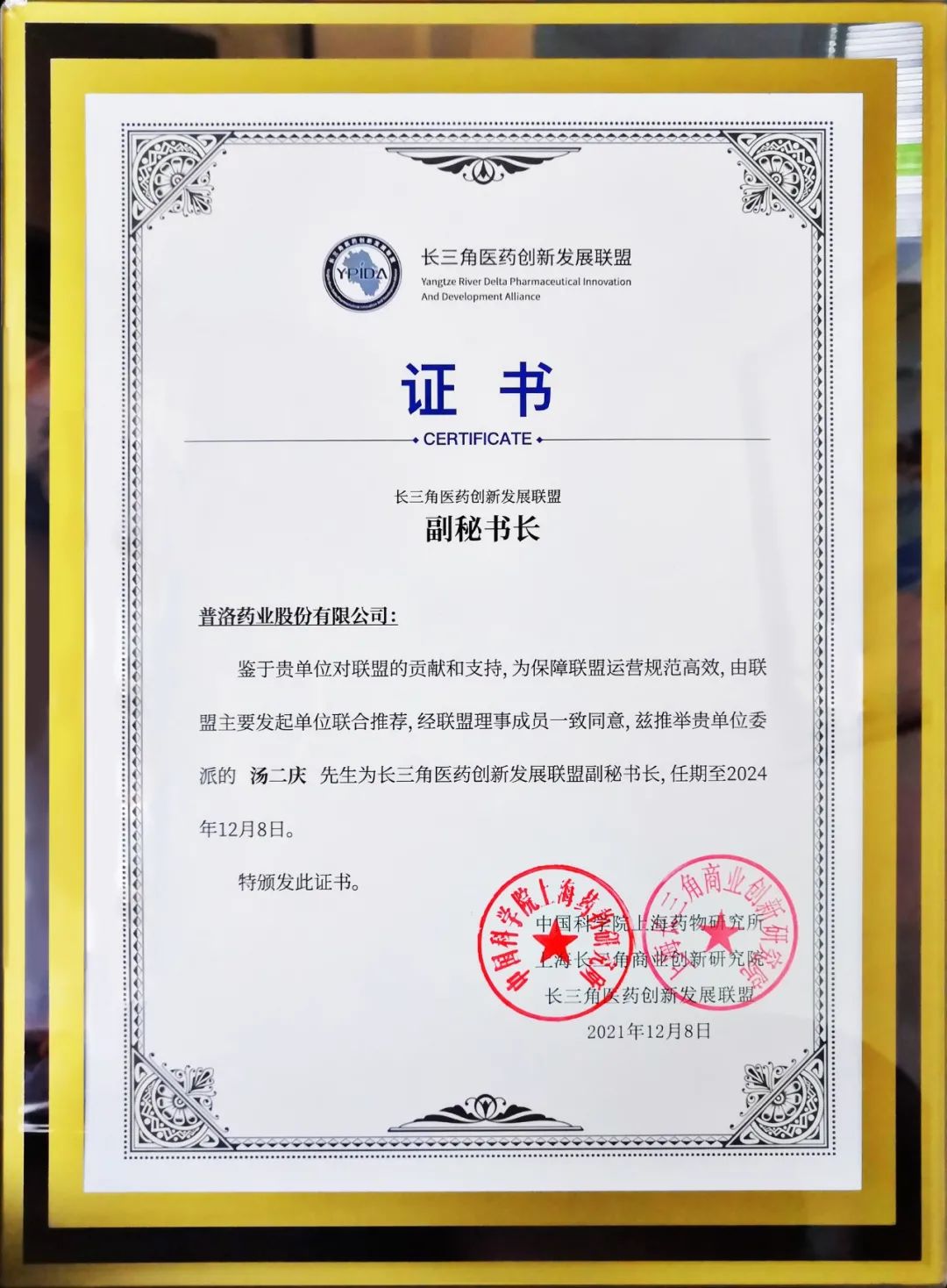 12月8日,长三角医药创新发展联盟(以下简称:联盟)成立大会暨长三角“十四五”医药创新发展论坛在上海隆重召开。会议以“创新生态?耕享未来”为主题,采取线上线下结合的形式,近百名国内政、产、学、研、医、用、商、金、介等方面的领导、专家、学者聚焦生物医药创新,共商医药产业高质量发展大计,共促长三角医药创新发展。普洛药业作为联盟发起单位之一受邀出席,公司副总经理、制剂事业部总经理汤二庆任联盟副秘书长。
