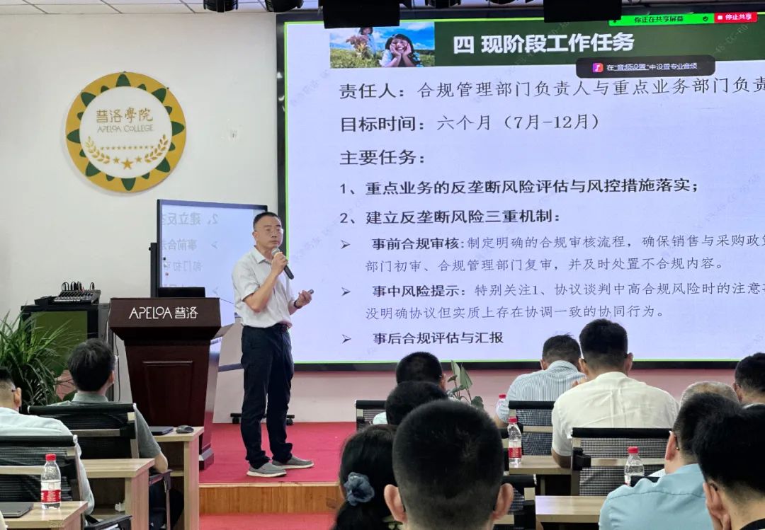 近日,普洛药业组织开展反垄断合规管理专题培训,旨在进一步提升公司员工对反垄断法律法规的理解与认识,加强企业内部的合规管理,确保公司在激烈的市场竞争中始终秉持公平竞争的原则,共同营造和谐健康的商业环境。普洛药业反垄断委员会全体成员、原料药及制剂事业部有关人员、各下属子公司负责人及审计监察工作相关人员一同参会。