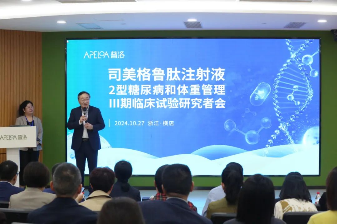 10月27日,由北京大学人民医院组织的“司美格鲁肽注射液2型糖尿病和体重管理Ⅲ期临床试验研究者会”在横店圆满召开。本研究项目的主PI为北京大学人民医院纪立农教授。会议汇聚了包括全国40余家中心PI、机构负责人等共100余位行业大咖和专家学者。普洛药业总经理何春、药品事业部总经理俞亮以及临床医学部相关人员等出席会议。
